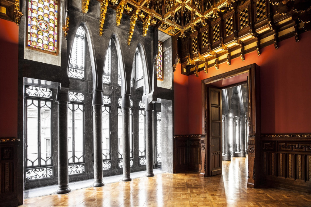 参观古埃尔宫时,您将探索为富裕的古埃尔家族设计的壮丽建筑。宫殿拥有令人叹为观止的内部装饰、优雅的拱门和精美的铁艺工艺。屋顶是亮点之一,彩色烟囱反映了高迪的艺术愿景。